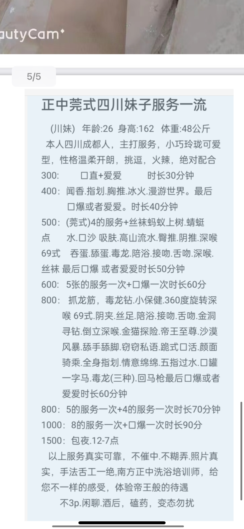 照片和本人相差不大,腹部微肉,胸不大,但是不糊弄,不催钟,建议要么4张,要么8张,5张有点“万金油”~